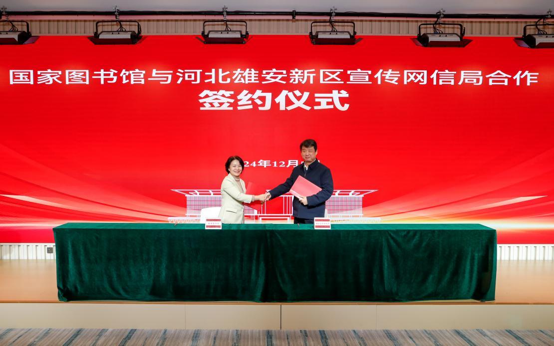人民網(wǎng)雄安12月9日電 (記者宋燁文)日前,國(guó)家圖書館與雄安新區(qū)宣傳網(wǎng)信局在雄安科創(chuàng)中心舉行合作簽約儀式,雙方將共建雄安圖書館暨國(guó)家圖書館雄安分館。文化和旅游部公共服務(wù)司副司長(zhǎng)閆曉東,國(guó)家圖書館黨委書記、副館長(zhǎng)陳櫻,雄安新區(qū)黨工委委員、宣傳網(wǎng)信局局長(zhǎng)邊建國(guó)出席簽約儀式。