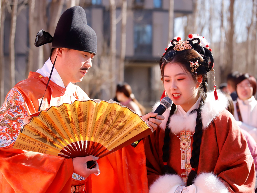 活動內(nèi)容精彩紛呈,共設置了“李白對詩”“團圓錘丸”“福運紅包”“幸運抽獎”等別出心裁的互動游戲環(huán)節(jié),書法家揮毫潑墨,現(xiàn)場書寫送福團扇,手藝人精心制作糖葫蘆和炫彩棉花糖等美食,讓大家在游戲活動中品味元宵,現(xiàn)場一片歡聲笑語、其樂融融,洋溢著喜慶祥和的節(jié)日氛圍。