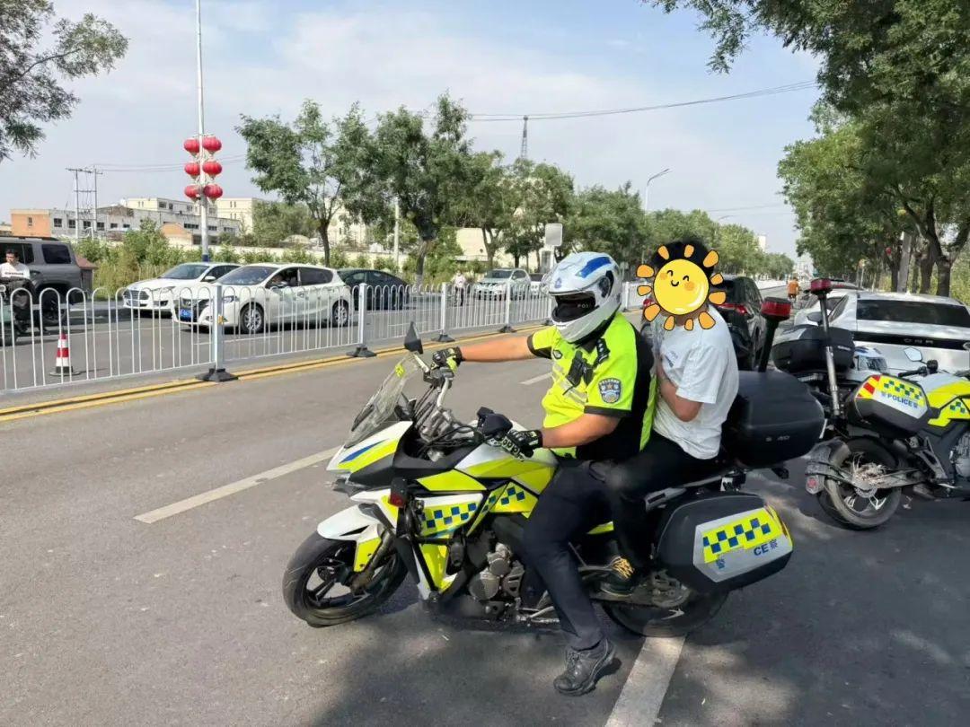 6月7日上午8時(shí)52分,安新交警在高考考點(diǎn)管控道路執(zhí)勤時(shí),一輛私家車駛來(lái),司機(jī)焦急稱車上的高考考生馬上遲到了,帶隊(duì)民警立即安排備勤騎警駕駛摩托車送考生參加考試,順利在考前抵達(dá)考點(diǎn)。