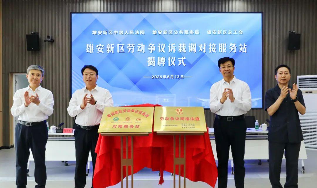 為進一步深化協(xié)作,推動勞動爭議多元化解工作提質(zhì)增效,提升雄安新區(qū)勞動者權益保護水平,6月13日,河北雄安新區(qū)中級人民法院、雄安新區(qū)公共服務局、雄安新區(qū)總工會聯(lián)合成立了雄安新區(qū)首批勞動爭議訴裁調(diào)對接服務站和首家勞動爭議網(wǎng)格法庭。