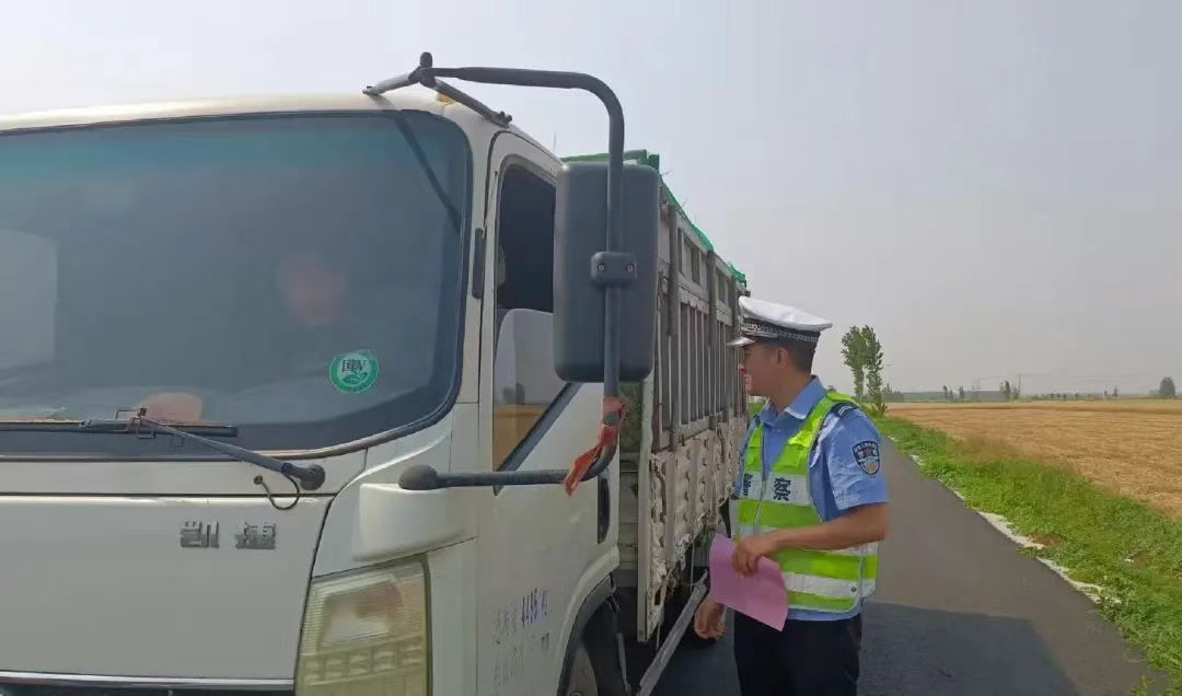 “老哥,這農(nóng)用車后邊可不能載人啊,太危險(xiǎn)了?!臂〕砍繑r住一輛裝滿秸稈的農(nóng)用車。駕駛員李大哥解釋道:“今天家里人都忙著收麥子,就想著順便把他們帶回去,圖個(gè)方便?!?/p>