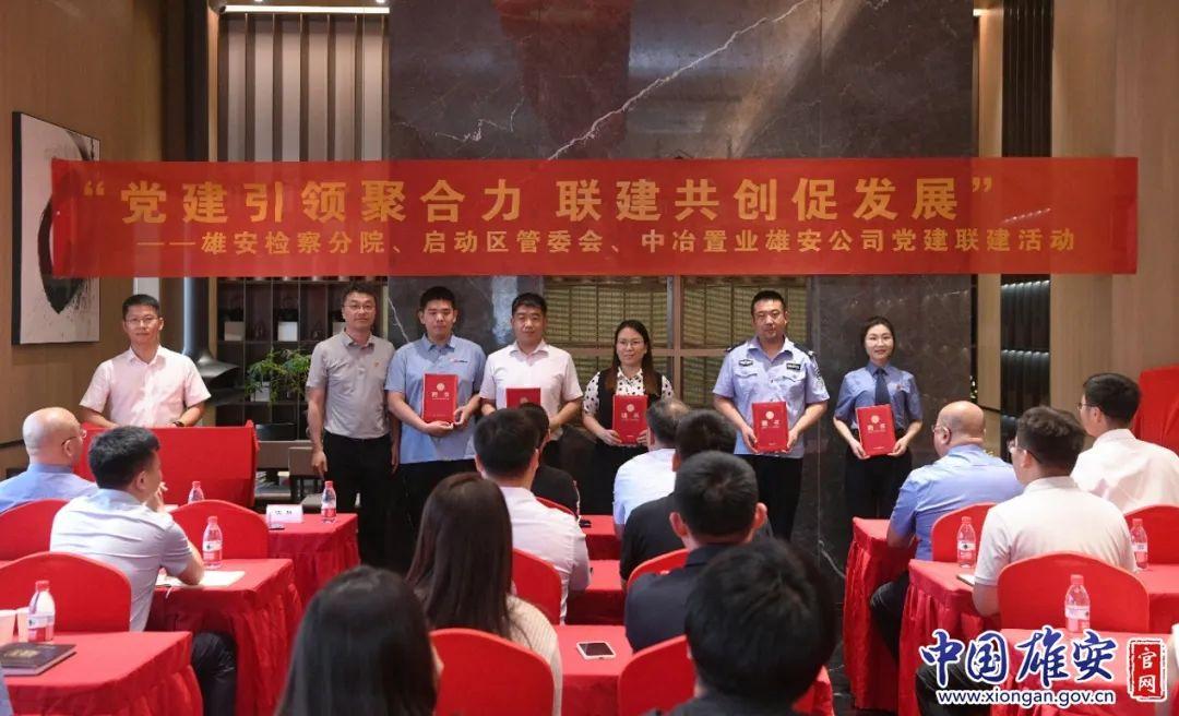 活動(dòng)現(xiàn)場,啟動(dòng)區(qū)管委會、雄安檢察分院共同為德潤社區(qū)黨員先鋒隊(duì)、雄安檢察分院青年先鋒隊(duì)授旗,為社區(qū)法治疏解議事會和法律顧問頒發(fā)聘書,開展黨員“雙報(bào)到”,并為黨建聯(lián)建基地揭牌。