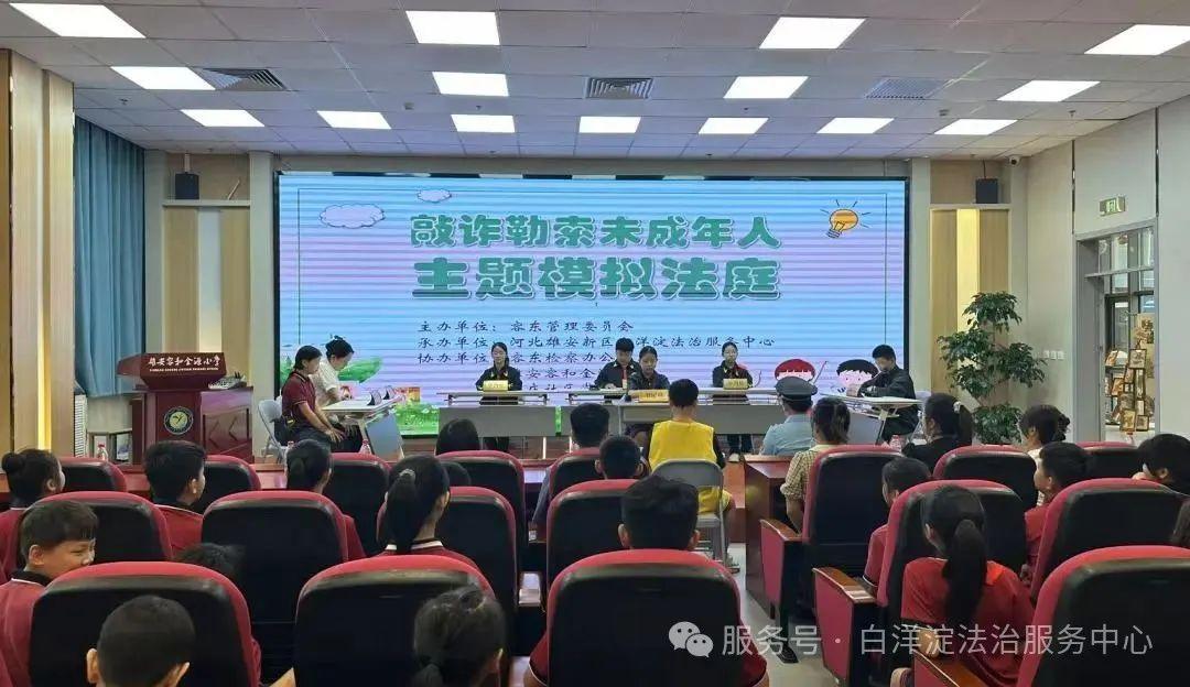 2025年8月8日,容東片區(qū)第三場(chǎng)模擬法庭在容和金源小學(xué)舉辦。參演的學(xué)生分別扮演審判長(zhǎng),陪審員,公訴人,辯護(hù)人,被告等角色,通過法庭調(diào)查,舉證質(zhì)證,法庭辯論,最后陳述等環(huán)節(jié),生動(dòng)還原了一場(chǎng)以敲詐勒索未成年人為主題的庭審活動(dòng)。