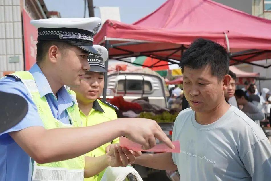 集市墻面、攤位旁,民警認(rèn)真張貼交通安全海報(bào),“向交通違法說(shuō)不”等標(biāo)語(yǔ)醒目亮眼。把交通安全知識(shí)“貼”進(jìn)生活場(chǎng)景,讓往來(lái)群眾隨時(shí)能看到,潛移默化提升安全意識(shí)。