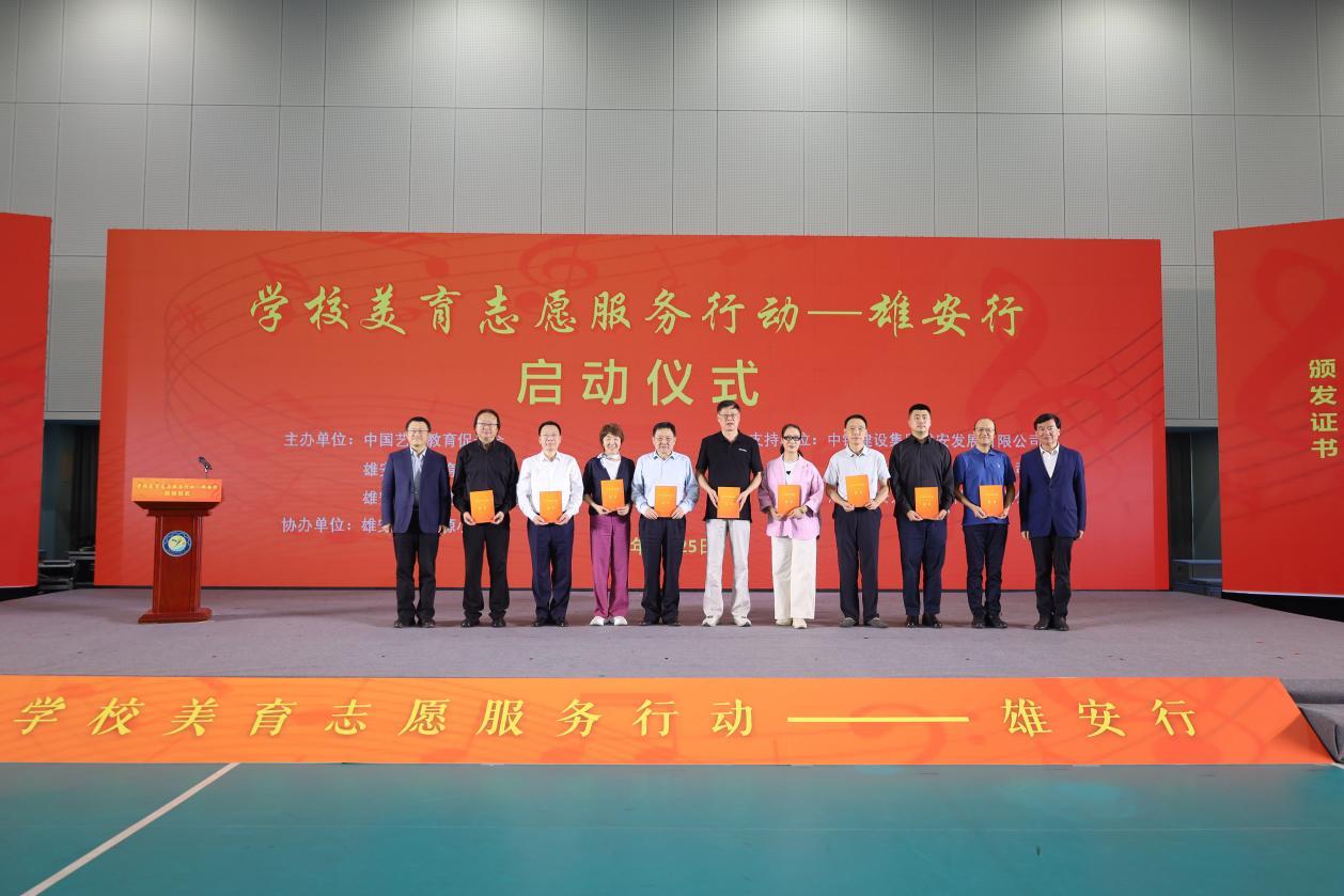 啟動儀式上,中國藝術(shù)教育促進(jìn)會以及雄安新區(qū)教育發(fā)展基金會相關(guān)負(fù)責(zé)人為首批志愿服務(wù)專家代表、愛心企業(yè)頒發(fā)了志愿證書。國家一級演員、程派青衣李海燕作為志愿者代表發(fā)出倡議,呼吁更多藝術(shù)家、美育專家和優(yōu)秀教師加入志愿服務(wù)行列。