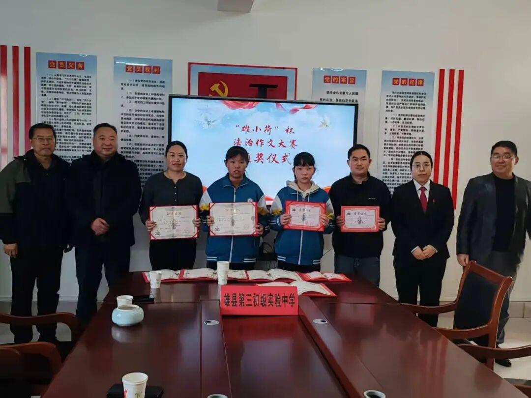 法治的陽光,照耀青春成長(zhǎng)之路;文字的力量,承載少年法治夢(mèng)想。10月24日,隨著“雄小荷”杯法治作文大賽評(píng)比結(jié)果的出爐,賽事組委會(huì)帶著榮譽(yù)與成果,相繼走進(jìn)雄縣第二、第三初級(jí)實(shí)驗(yàn)中學(xué)、雄縣第三高級(jí)中學(xué)初中部,為獲獎(jiǎng)師生頒獎(jiǎng)。