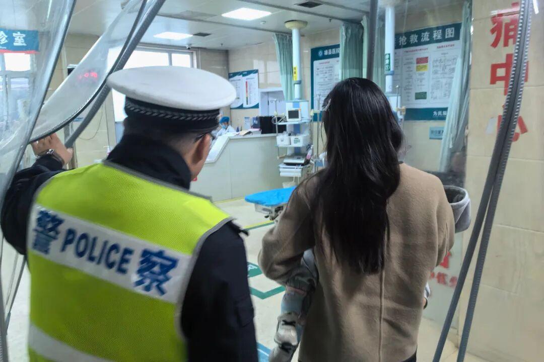 民警護送孩童就醫(yī)。