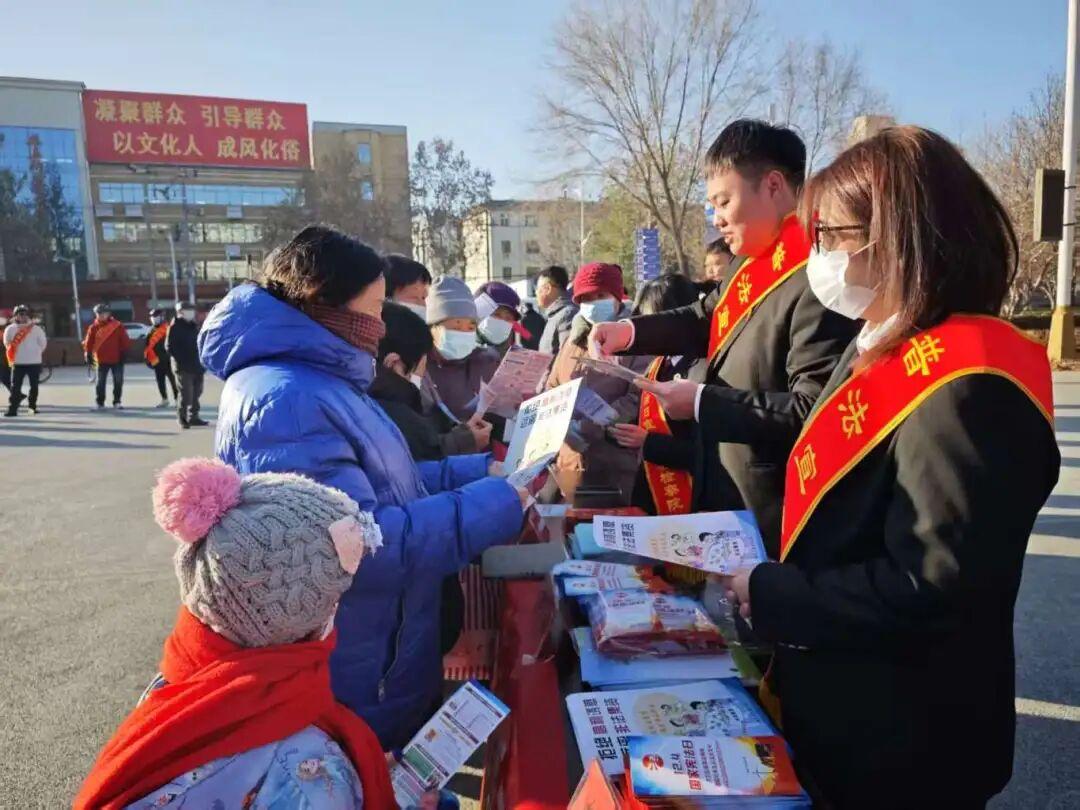 活動(dòng)在國(guó)歌聲和憲法宣誓聲中徐徐展開,鏗鏘的宣誓聲是對(duì)憲法崇高的致敬,也是對(duì)履職盡責(zé)的鄭重承諾。鮮活的海報(bào)、圖冊(cè)圍繞憲法核心規(guī)定、婚姻彩禮陷阱、防范電信詐騙等內(nèi)容講述群眾身邊的法律事?!皯椃ㄊ菄?guó)家的根本大法,但它就在老百姓身邊?!薄疤靸r(jià)彩禮不可取,收彩禮是為了孩子們的幸福?!狈ㄔ焊删碇v解員,結(jié)合典型案例把抽象的條文演繹成鮮活的生活指引。有人在講,有人在聽,有人在問,有人在答,憲法那紅色的模樣在這一來一回間愈發(fā)清晰。