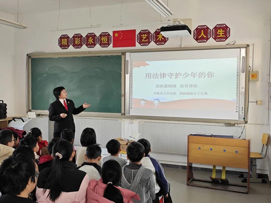 走進(jìn)安新南六小學(xué)、大趙莊小學(xué),法官們結(jié)合青春期學(xué)生的心理特點(diǎn)與成長(zhǎng)需求,以通俗的語(yǔ)言、真實(shí)的案例,生動(dòng)講解防范校園欺凌、性侵害、網(wǎng)絡(luò)沉迷及電信詐騙等關(guān)鍵知識(shí)。在五星紅旗下,同學(xué)們高舉右拳,莊嚴(yán)宣誓:“不做殘忍的欺凌者、不做冷漠的旁觀者、不做沉默的受害者,團(tuán)結(jié)同學(xué)、友善待人!”鏗鏘誓言回蕩校園,不僅將法治信念深深鑄入童心,也將整場(chǎng)活動(dòng)推向情感的高潮。