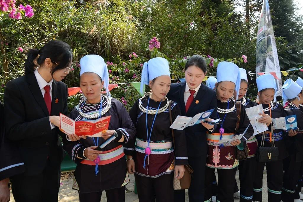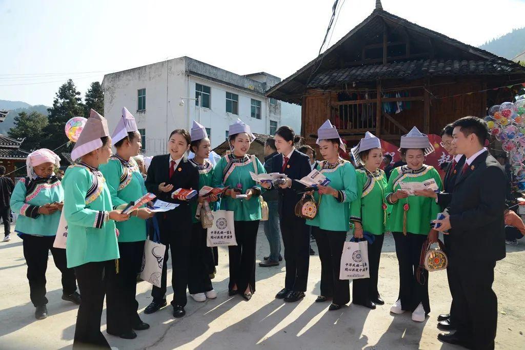近日,貴州省黔東南州榕江縣人民法院組織干警來到水尾水族鄉(xiāng)開展普法宣傳活動,為當(dāng)?shù)馗髯迦罕娝蜕戏ㄖ巍按蠖Y包”,共同慶祝水尾鄉(xiāng)建鄉(xiāng)四十周年。