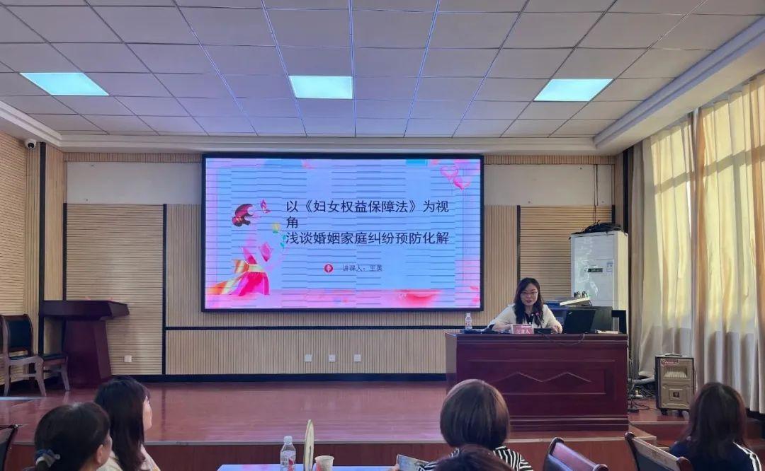 王英以《以〈婦女權益保障法〉為視角,淺談婚姻家庭糾紛預防化解》為主題,結合自身工作經驗和審判實踐中的典型案例,用通俗易懂的語言講解婦女權益保護相關法律法規(guī),增強婦聯干部的法律意識,進一步提高婦聯干部運用法治思維和法治方式維護合法權益、化解矛盾糾紛的能力和水平。