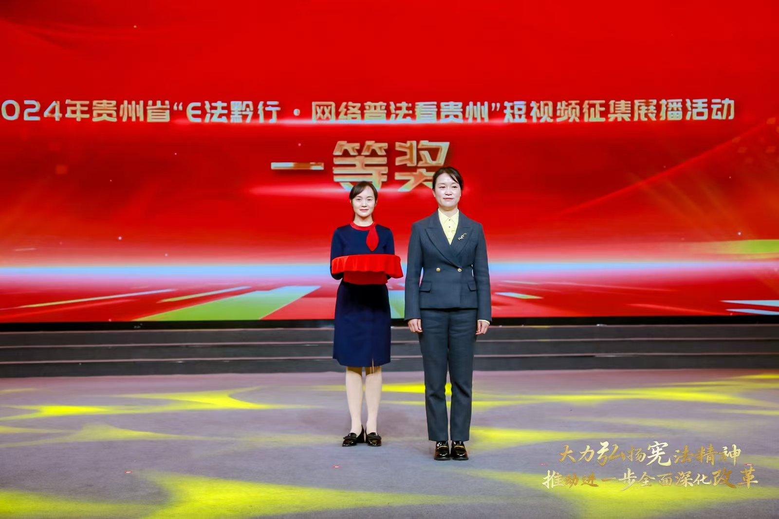 12月1日,由貴州省委宣傳部、貴州省委依法治省辦、貴州省委網(wǎng)信辦、貴州省司法廳聯(lián)合主辦的2024年貴州省“12·4”憲法宣傳周啟動(dòng)儀式暨“E法黔行·網(wǎng)絡(luò)普法看貴州”短視頻征集展播獲獎(jiǎng)作品展映式在貴陽(yáng)舉行。貴州省委常委、貴州省委宣傳部部長(zhǎng)盧雍政在活動(dòng)上致辭并為獲獎(jiǎng)代表頒獎(jiǎng),貴州省人民政府副省長(zhǎng)賈利軍出席并為獲獎(jiǎng)代表頒獎(jiǎng)。