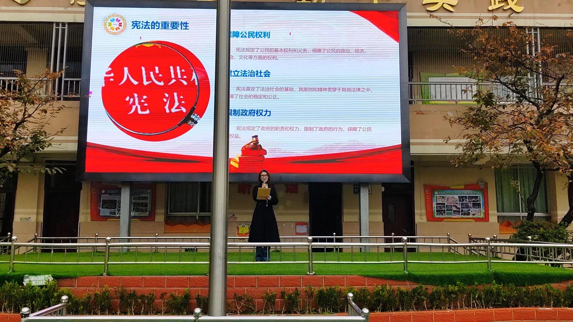 活動(dòng)現(xiàn)場(chǎng),法治副校長深入淺出地向?qū)W校師生講解憲法知識(shí),全面闡述了憲法的本質(zhì)、地位、核心內(nèi)容,并探討了憲法與青少年成長的緊密聯(lián)系。期間,學(xué)生代表領(lǐng)讀《中華人民共和國憲法》的重要篇章,并在法治副校長的引領(lǐng)下進(jìn)行了憲法宣誓。