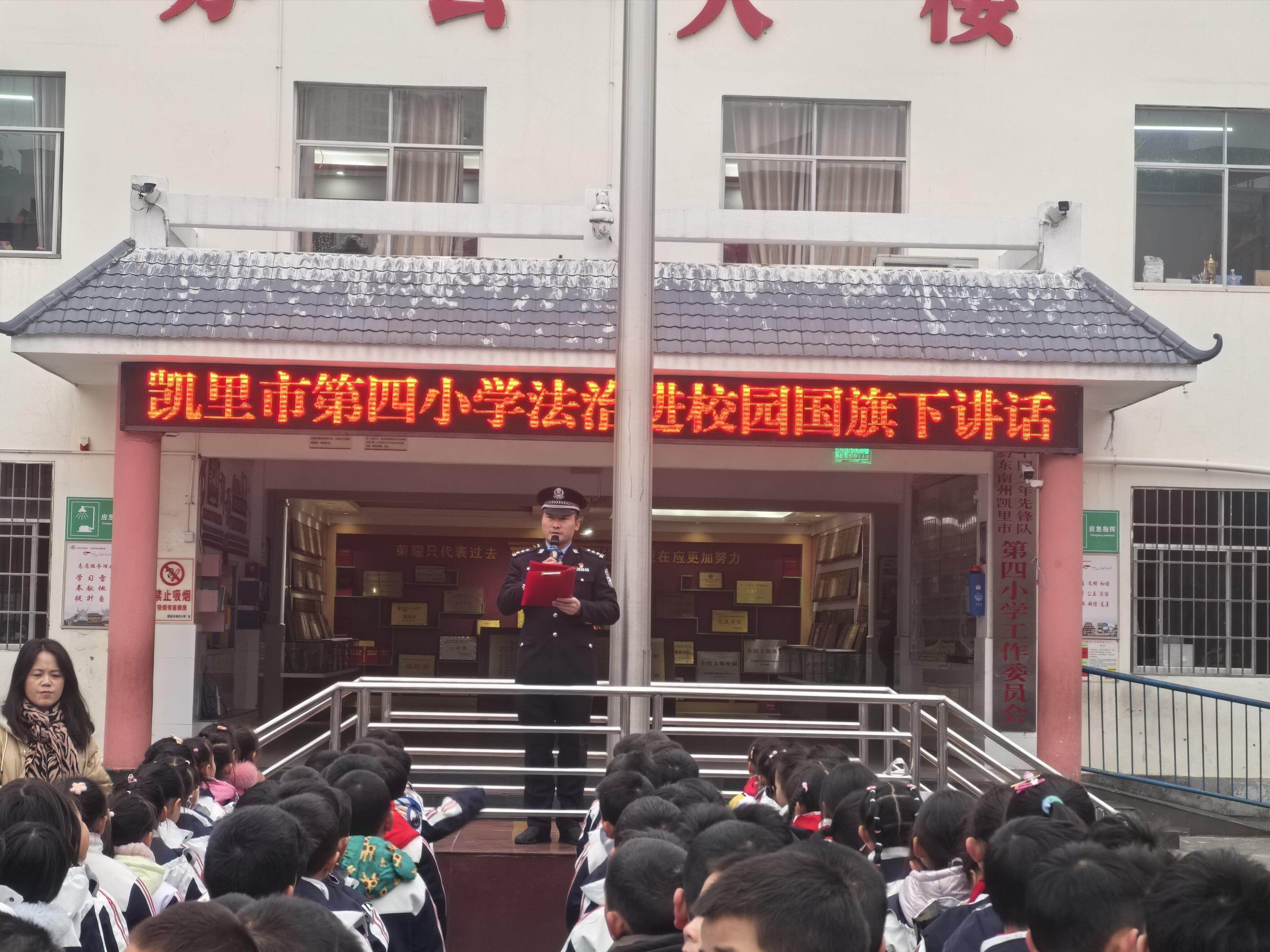 近日,貴州省黔東強制隔離戒毒所民警以法治副校長身份到黔東南州凱里市第四小學(xué)開展了專項法治教育活動,旨在進一步增強學(xué)生們的安全意識、法治意識和“防欺凌”的自我保護能力。