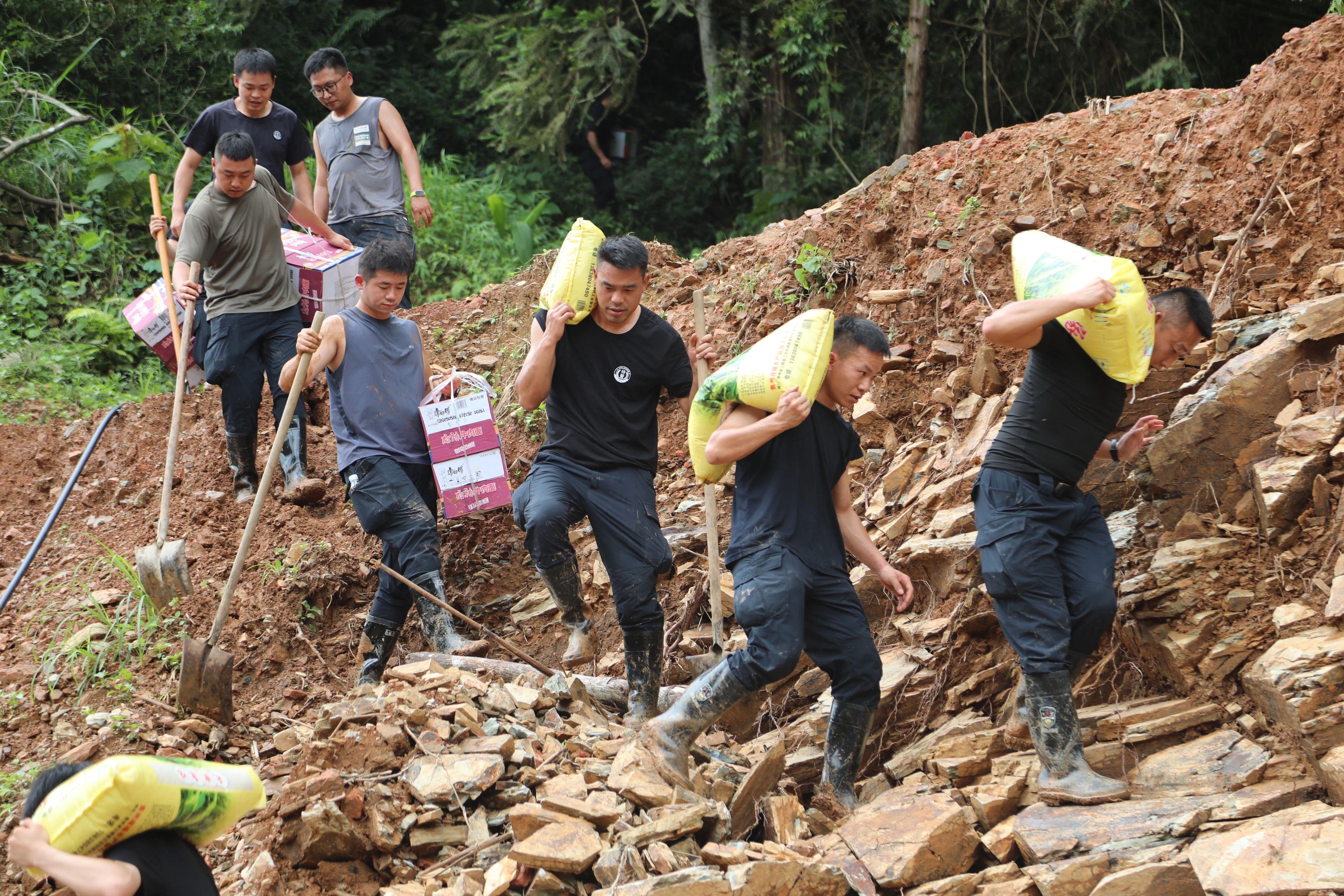 近日,持續(xù)強(qiáng)降雨導(dǎo)致貴州省黔南州三都縣多處受災(zāi),最嚴(yán)重的都江鎮(zhèn)部分村落出現(xiàn)道路沖毀、斷水?dāng)嚯姷木o急情況,部分村落物資難以進(jìn)入群眾家中。為切實(shí)保障受災(zāi)群眾基本生活需求,連日來(lái),黔南州公安局調(diào)動(dòng)特警支隊(duì)和都勻、獨(dú)山、甕安等地警力,與三都縣公安局一起奔赴都江鎮(zhèn)開(kāi)展清淤工作,并將物資送進(jìn)群眾家中。