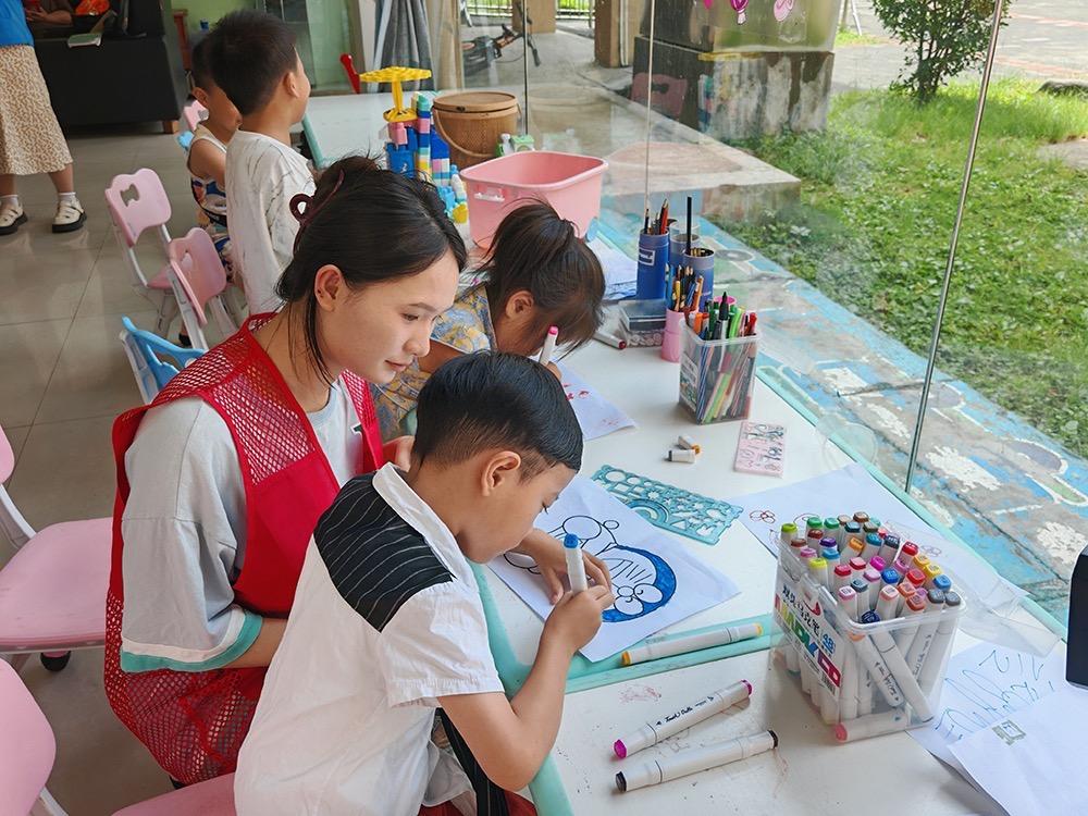 圖為“青春伴童心”暑期志愿服務(wù)活動(dòng)現(xiàn)場(chǎng)。