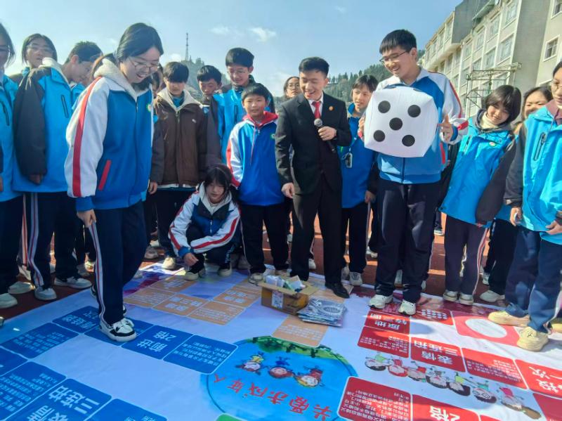活動(dòng)中,雙鳳人民法庭庭長支蘭芬以觀看預(yù)防未成年人犯罪警示教育片為切入點(diǎn),結(jié)合真實(shí)涉未成年人案件,深入剖析未成年人違法犯罪的誘因。同時(shí),干警通過“普法飛行棋”“普法大轉(zhuǎn)盤”“有獎(jiǎng)問答”等趣味游戲,搭建普法互動(dòng)平臺(tái),讓學(xué)生在歡樂參與中深化法律知識(shí)記憶,現(xiàn)場氛圍熱烈。