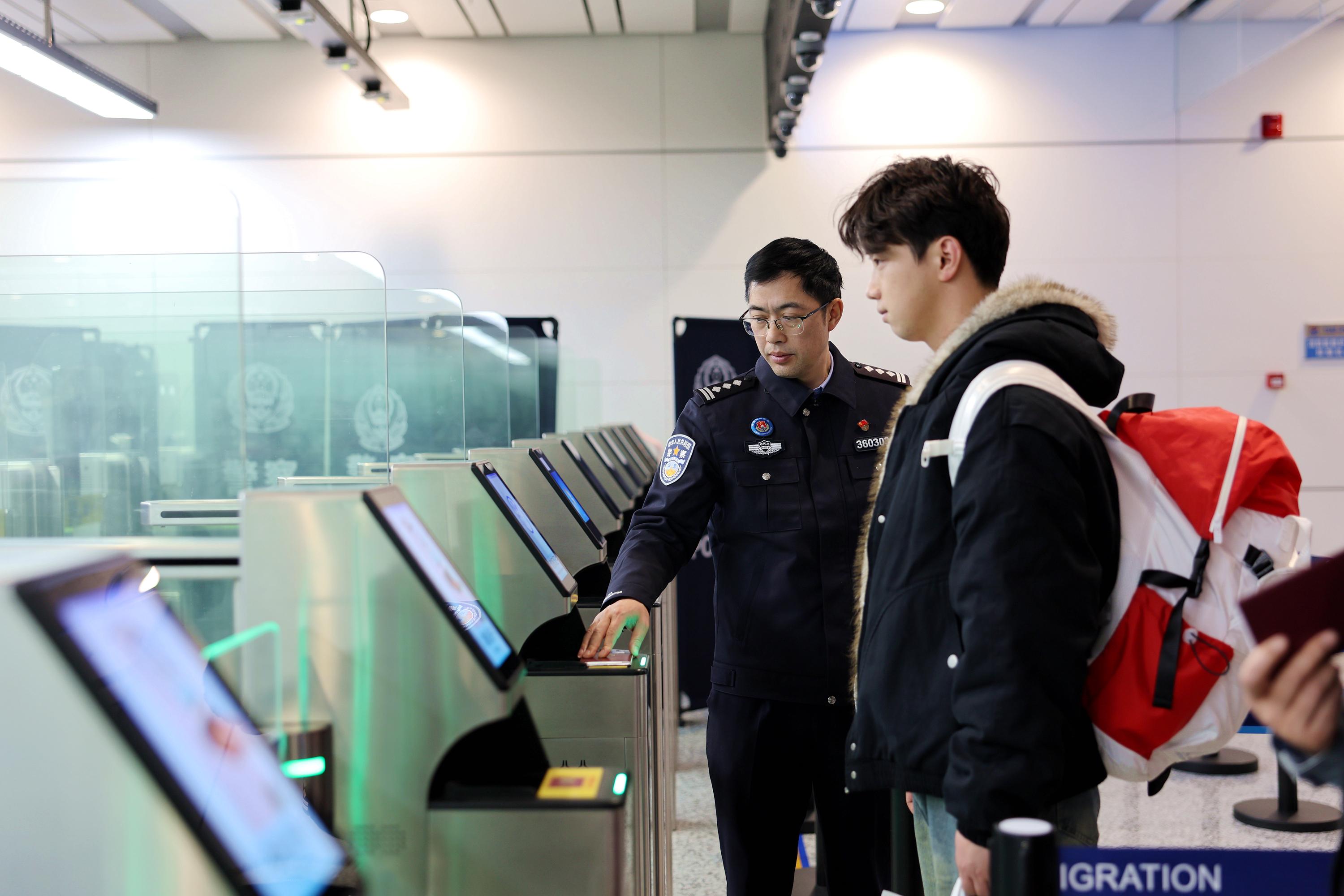 “隨著我國各項便利中外人員往來政策紅利的不斷釋放,近年來我們持續(xù)優(yōu)化邊檢服務(wù)舉措,升級通關(guān)保障設(shè)施,增開查驗通道,科學調(diào)配警力,有效應(yīng)對客流高峰,保障口岸通關(guān)安全、順暢、高效。同時,前置‘黨員先鋒崗’咨詢引導(dǎo)臺,設(shè)置快捷通關(guān)備案采集點,推行外國人入境卡網(wǎng)上填報等便利措施,讓國門通關(guān)更有溫度?!辟F州出入境邊防檢查總站邊防檢查處處長曠磊介紹道。