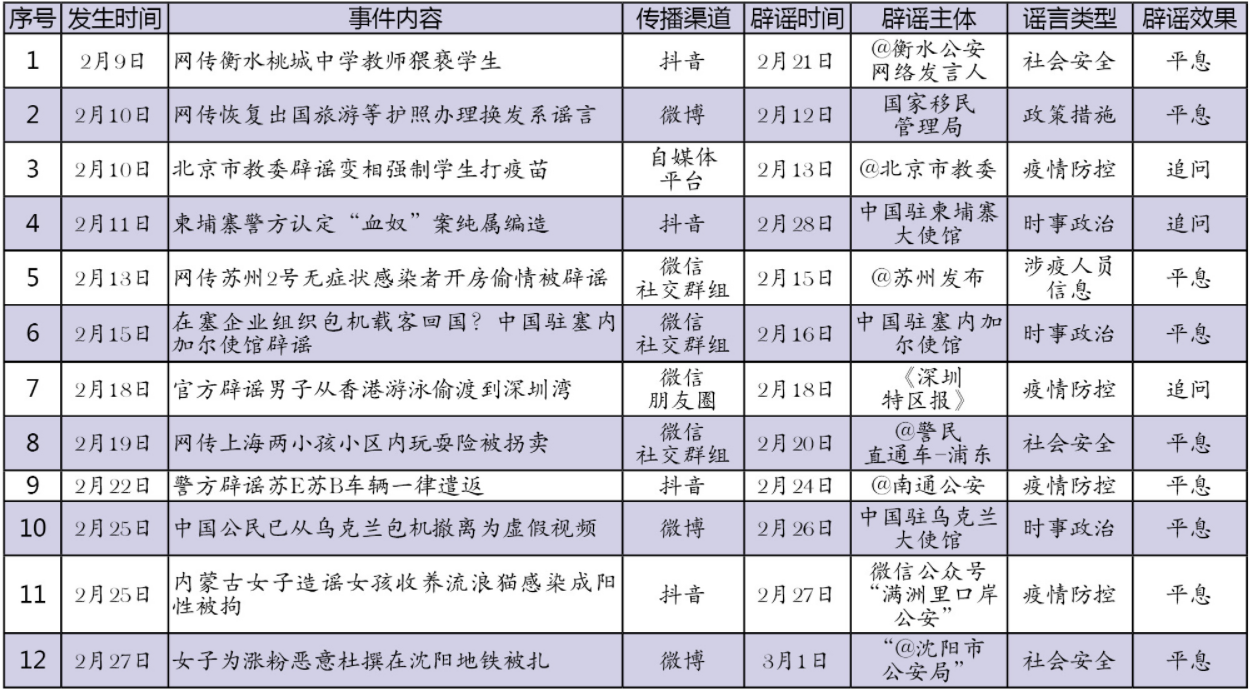 2月網(wǎng)絡(luò)涉法謠言辟謠榜單共梳理、匯總12起熱點事件,圍繞謠言持續(xù)時間、傳播渠道、產(chǎn)生地域、類型以及辟謠主題等維度綜合分析。法治網(wǎng)輿情中心從中篩選兩起關(guān)注度較高、具有典型意義的案例研判,以期為網(wǎng)絡(luò)辟謠工作提供參考借鑒。