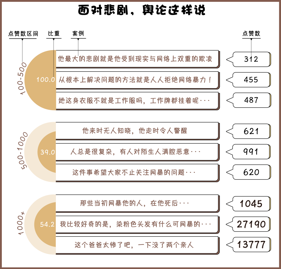 近年來,因網(wǎng)絡(luò)暴力導(dǎo)致的悲劇事件頻出,例如“尋親少年”劉學(xué)州因與親生父母親的矛盾遭受網(wǎng)絡(luò)暴力,最終選擇留下一封“來時即輕,還時亦凈”的遺書后自殺;“粉發(fā)女孩”鄭靈華因染粉色頭發(fā)被網(wǎng)暴導(dǎo)致嚴重抑郁,抗爭無果后選擇結(jié)束自己的生命;武漢被撞致死小學(xué)生的母親從高樓一躍而下,去世前曾遭遇惡意評論。
