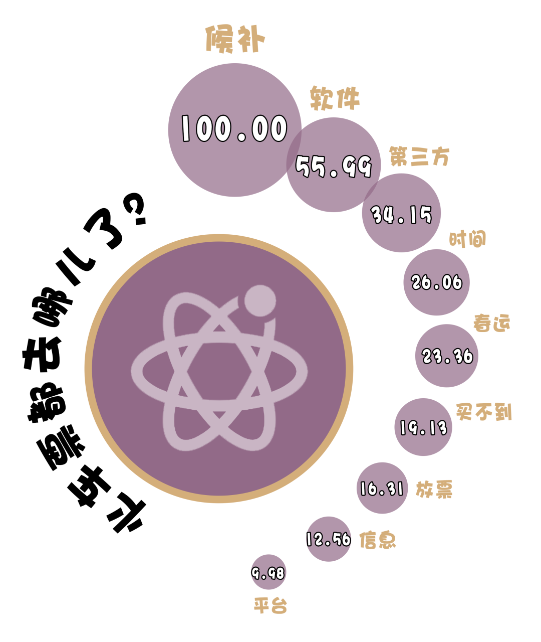 (制作:法治網(wǎng)輿情中心 數(shù)據(jù)來源:收集嗶哩嗶哩《科技黃牛大戰(zhàn)12306,火車票都去哪了?》視頻下3163條一級(jí)評(píng)論,對(duì)選取的信息進(jìn)行數(shù)據(jù)清洗及自然語(yǔ)言處理,將熱度最高的詞語(yǔ)規(guī)定為100)