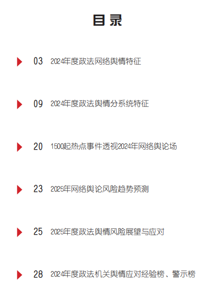 3月20日,法治網(wǎng)發(fā)布最新研究成果《2024年度政法輿情分析報(bào)告》(以下簡(jiǎn)稱(chēng)《報(bào)告》),全面回顧、梳理并分析了2024年度政法輿情的典型特征,并對(duì)2025年度的網(wǎng)絡(luò)輿論態(tài)勢(shì)和政法輿情風(fēng)險(xiǎn)作出研判。