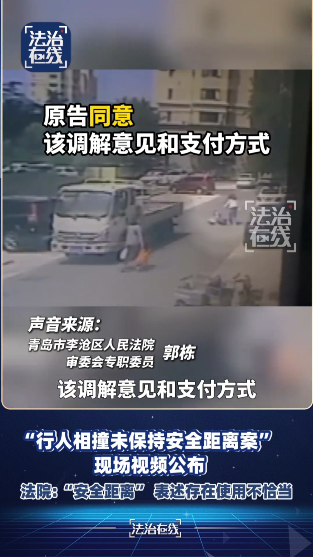 5月10日20時許,“@CCTV法治在線”發(fā)布獨家報道,李滄區(qū)法院工作人員接受采訪,公布事發(fā)現(xiàn)場公共場所視頻,闡明真實案情與普法案例介紹的案情、網(wǎng)傳的案情存在較大出入:一是該案中原告、被告均為女性,事發(fā)時前者59歲,后者29歲;二是原告并未“突然轉(zhuǎn)身往回走”,而是緩慢轉(zhuǎn)身站住,且與被告之間尚有一定距離;三是普法法官稱被告“存在未保持安全距離的過錯”的表述不當(dāng),事實上被告系從后面左右張望、快步前行,存在未注意前方情況的問題。對于法官表述不當(dāng)造成誤導(dǎo)一事,法院表示道歉,承諾將進一步規(guī)范案例普法工作。報道發(fā)出后,網(wǎng)民對法院調(diào)解結(jié)果的不滿情緒得以緩解,《北京晚報》《新京報》等媒體,“@胡錫進”等大V表示,各普法主體應(yīng)確??茖W(xué)嚴(yán)謹(jǐn),《南方都市報》認(rèn)為涉事法院有必要對普法失誤的原因追根究底。截至5月15日12時,相關(guān)信息近18萬條,其中,媒體報道1734篇,客戶端文章13.8萬篇,微博2.7萬條,視頻近9千條。