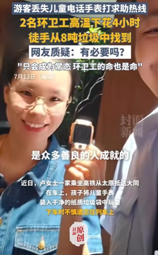 7月13日,“翻垃圾找兒童手表被質(zhì)疑浪費(fèi)人力”話題沖上微博熱搜第一。引發(fā)爭議后,大同市城管局副局長回應(yīng)稱,此前也有過幫市民尋找失物的先例,此次并非特殊個例,“只要老百姓有需求,我們肯定去做”。該言論再次激發(fā)網(wǎng)民不滿。多數(shù)網(wǎng)民認(rèn)為“有求必應(yīng)”也要區(qū)分輕重緩急。同時,圍繞游客身份衍生出特權(quán)猜測,有網(wǎng)民爆料其為“深圳市寶安區(qū)人民法院政治部主任盧某”“深圳紀(jì)委干部”,對此涉事法院緊急辟謠。主流媒體圍繞公共服務(wù)邊界問題進(jìn)行探討,如《大河報》刊文指出,當(dāng)個別需求輕易撬動巨大公共力量時,公共資源或?qū)⒚媾R被無度索取的危機(jī);央廣網(wǎng)認(rèn)為,相關(guān)管理部門應(yīng)建立更科學(xué)的價值評估體系,在滿足民眾需求與資源優(yōu)化間找到平衡。