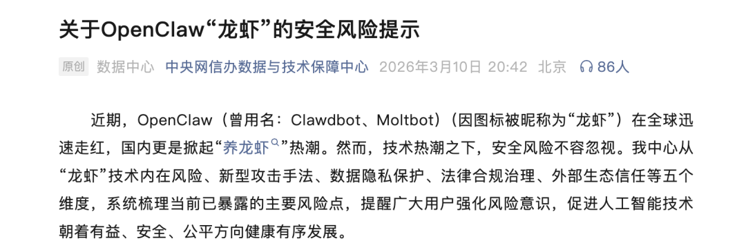 【輿情熱點(diǎn)】OpenClaw“龍蝦”走紅,擁抱新技術(shù)也要系好“安全帶”