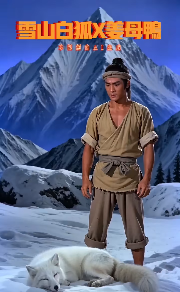 2月27日,抖音用戶“川娃醬板鴨”發(fā)布一則AI短片《雪山救狐》,視頻將“狐貍報恩”的片段改編成救狐貍時送上一只“醬板鴨”,隨后“醬板鴨”轉世成人上門復仇的故事。其中,“你可曾在雪山救過一只狐貍”“我不是狐貍,我是那只醬板鴨”等魔性臺詞與邵氏武俠風搭配,立刻吸引網民關注。隨后,網民通過AI技術,將“醬板鴨”替換為北京烤鴨、豆汁、胡辣湯等各種元素,接力改編幽默劇情,宣傳各地多樣文化。