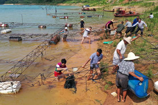 湖南省資興市加強跨部門協(xié)作,聯(lián)合實施東江湖網(wǎng)箱養(yǎng)殖退水上岸工程和清船、清網(wǎng)、清江、清庫退捕禁捕“四清四無”專項行動。