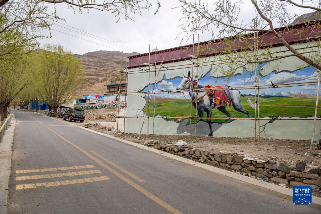 這是4月10日在拉薩市達(dá)孜區(qū)章多鄉(xiāng)恰村拍攝的墻畫。記者 晉美多吉 攝