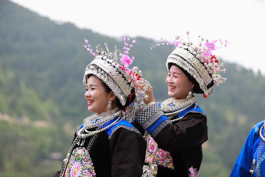 4月22日,在新民村苗族同胞梳妝打扮,歡度高雍苗族“三月三”。