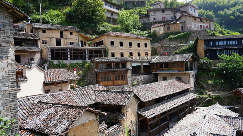 陳家鋪村三面環(huán)山,房屋呈崖居式分布,高低落差達(dá)200多米,錯(cuò)落有致。村里的房屋頂覆青瓦,外敷一種特制黃泥,被雨水沖刷得斑駁點(diǎn)點(diǎn),更顯韻味?!拔覀儽M量保留傳統(tǒng)村落的風(fēng)貌格局,村里現(xiàn)在還有祠堂、香火堂、古民居、社廟這些古文化建筑。”松陽縣四都鄉(xiāng)黨委委員、陳家鋪村黨支部書記鮑朝火說。