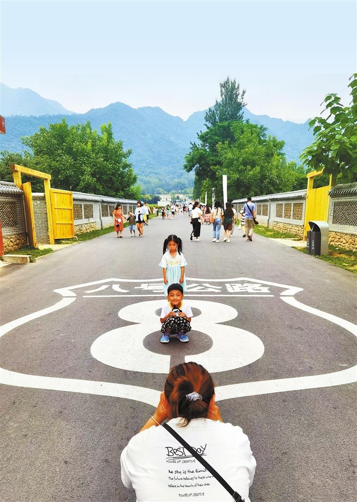 游客在蔡家坡村拍照留念