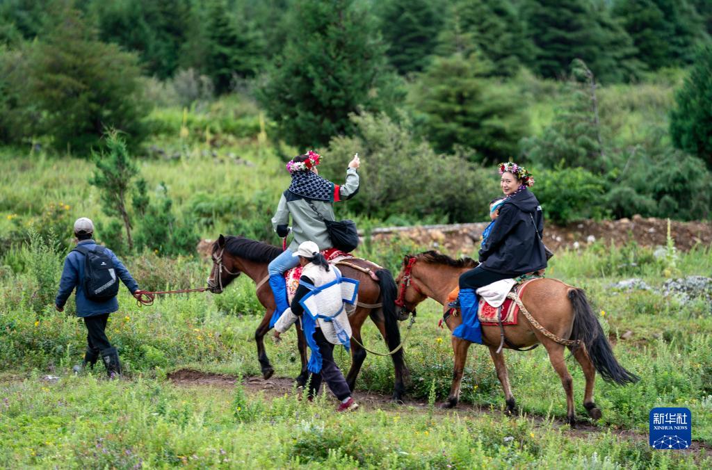 游客在麗江市玉龍納西族自治縣白沙鎮(zhèn)玉湖村體驗(yàn)騎馬(8月28日攝)。記者 陳欣波 攝