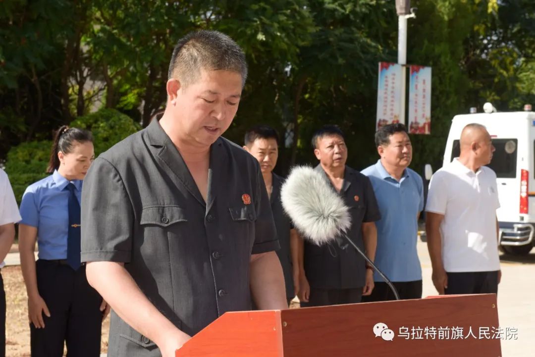 8月7日上午8:30,烏拉特前旗人民法院舉行了執(zhí)行專項(xiàng)行動(dòng)啟動(dòng)儀式。旗政協(xié)主席金山、旗委副書(shū)記政法委書(shū)記秦淮、旗人大常委會(huì)副主任高雷、旗政府副旗長(zhǎng)公安局局長(zhǎng)劉煜、旗檢察院檢察長(zhǎng)楊弘年、旗人民法院院長(zhǎng)張海平、旗司法局局長(zhǎng)吉仁浩雅爾出席啟動(dòng)儀式。旗人民法院領(lǐng)導(dǎo)班子成員、環(huán)節(jié)干部、執(zhí)行局、法警大隊(duì)全體干警參加了儀式。部分市旗人大代表、政協(xié)委員、紀(jì)委監(jiān)委、政法委、公證處工作人員、媒體記者受邀參加啟動(dòng)儀式并全程參與執(zhí)行行動(dòng),見(jiàn)證執(zhí)行全過(guò)程。
