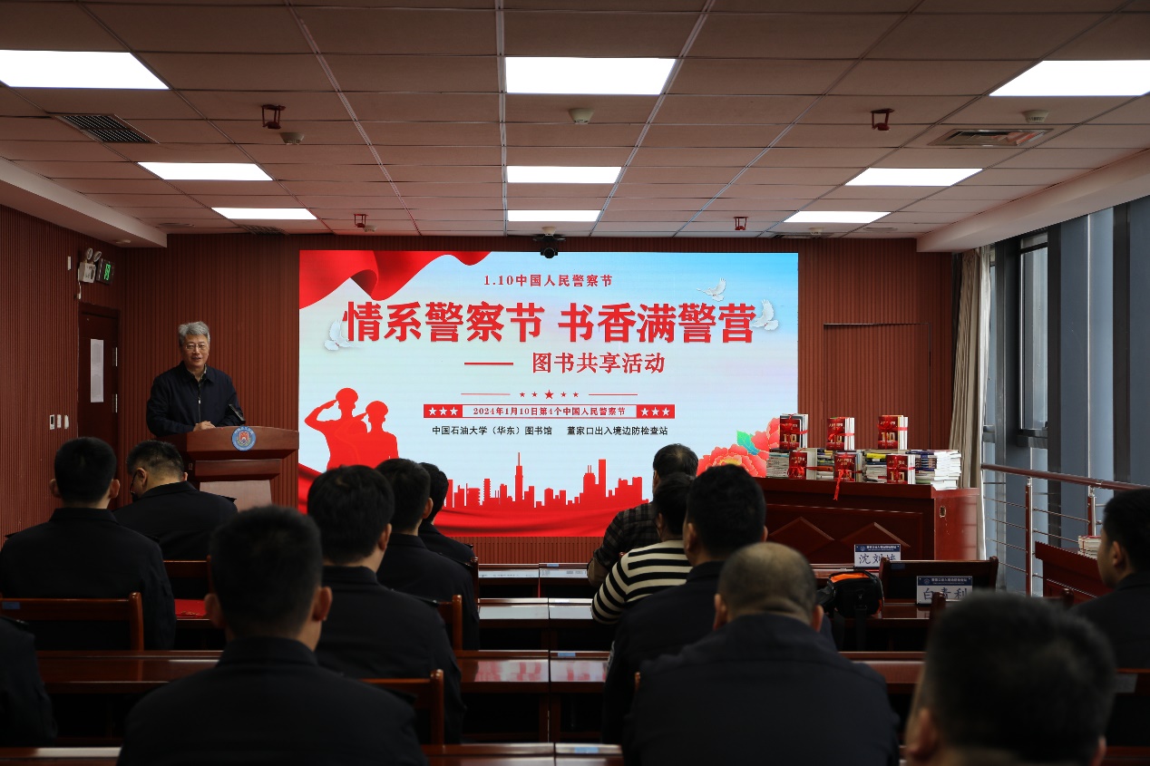 1月8日,山東出入境邊防檢查總站董家口邊檢站與中國石油大學(華東)圖書館開展“情系警察節(jié) 書香滿警營”圖書共享活動,慶祝第四個中國人民警察節(jié),鼓勵民警發(fā)現(xiàn)讀書的樂趣,培養(yǎng)讀書的習慣,推動“書香警營”建設(shè)。