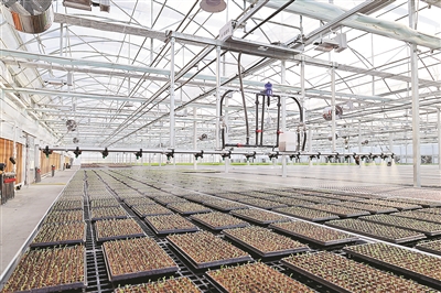 在“謝徑安·傳化農(nóng)創(chuàng)村”的數(shù)字種苗工廠自動播種線,通過基質(zhì)處理、填土、打孔、播種、覆土、噴水以及碼垛等自動化流水線播種,一粒粒細小的種子精準入“土”,播種速度可達12萬粒/小時,相比手工播種提速近80倍,播種精準度超過99%。待項目全部投入運營,預計每年可向杭州及周邊地區(qū)種植戶提供優(yōu)質(zhì)種苗2800余萬株,輻射帶動種植面積5000畝以上。