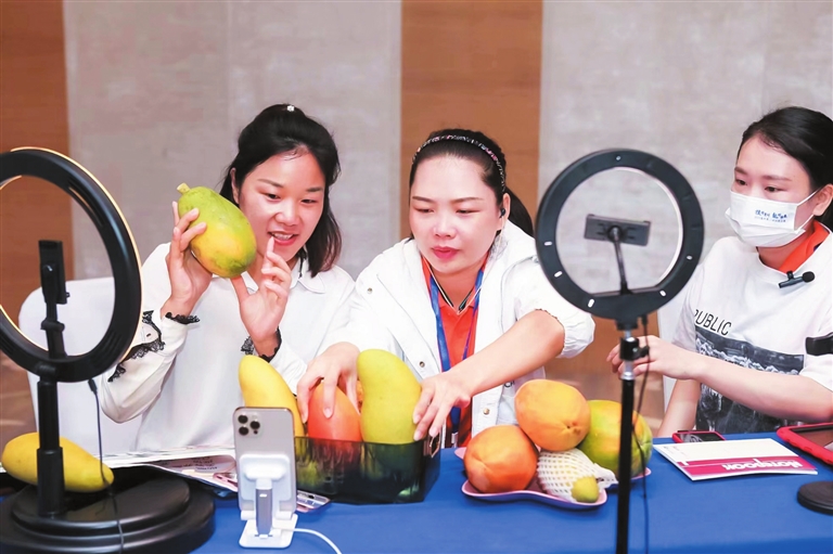 通過不斷摸索和嘗試,許雅情從缺乏經(jīng)驗、不自信、迷茫的“電商小白”一路成長,用心經(jīng)營,不僅通過直播帶貨銷售三亞芒果、木瓜、百香果等熱帶水果,還成立“海南一鹿鮮農(nóng)業(yè)發(fā)展有限公司”、建立了“喜芒家”電商品牌。