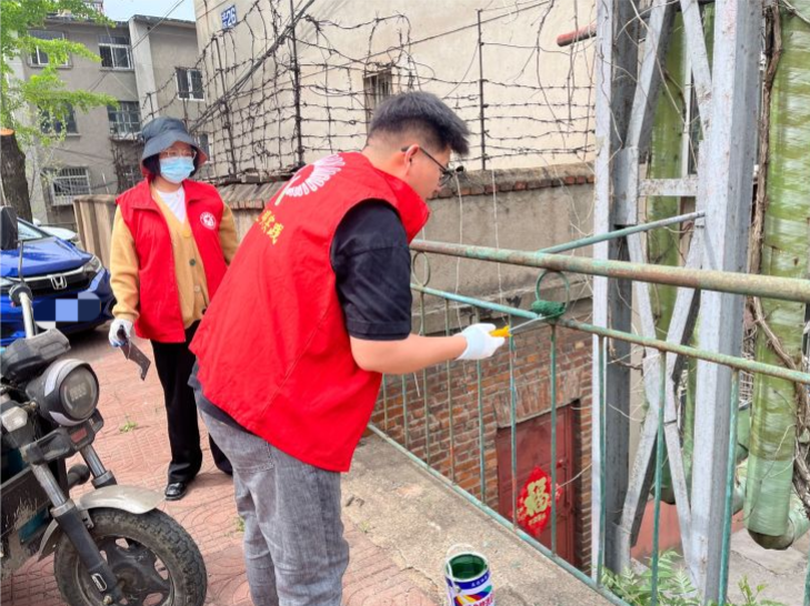 活動(dòng)中,工作站的成員們個(gè)個(gè)積極踴躍,不怕臟、不怕累、不怕曬,頂著炎炎烈日,分工合作、齊心協(xié)力,經(jīng)過一天的粉刷,把因受日曬雨淋、風(fēng)雨侵蝕、塵土污染等原因?qū)е碌挠推岬?、銹跡斑斑、漆面開裂等問題徹底解決。雖然衣服上、手上、胳膊上沾上了油漆,但大家干得熱火朝天,沒有一句喊苦喊累。經(jīng)過全體工作人員的一致努力,老舊小區(qū)內(nèi)的欄桿、扶手、躺椅煥然一新,贏得了居民群眾的稱贊。