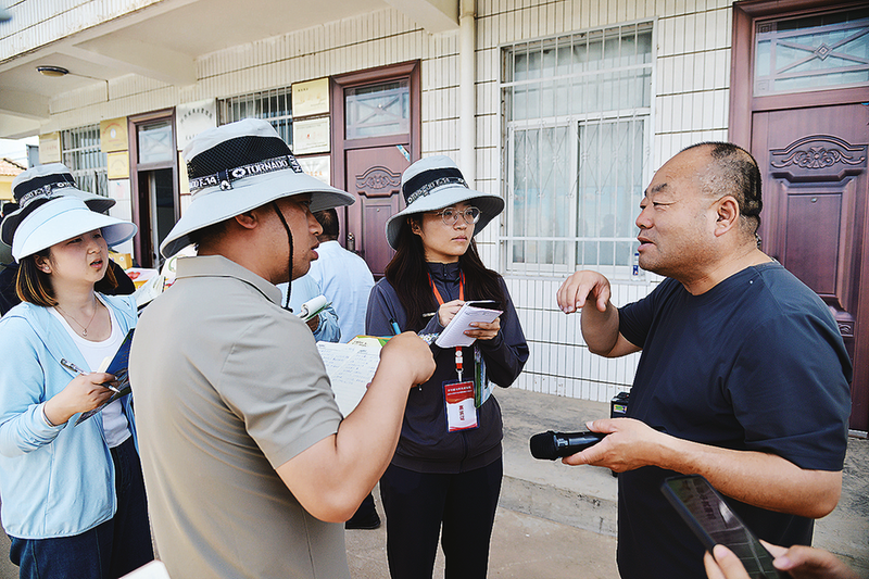 鳳翔區(qū)范家寨鎮(zhèn)鎮(zhèn)長(zhǎng)張革新(左)介紹相關(guān)情況