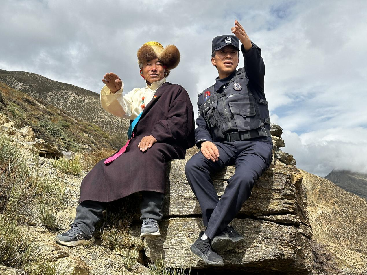 老黨員貢嘎巴桑與移民管理警察共同開展巡邊踏查活動(dòng) 格熱 攝