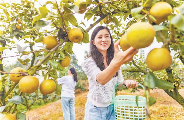 7月4日,巴南區(qū)二圣鎮(zhèn)集體村梨園,游客感受采摘樂趣 通訊員 劉紀湄 攝
