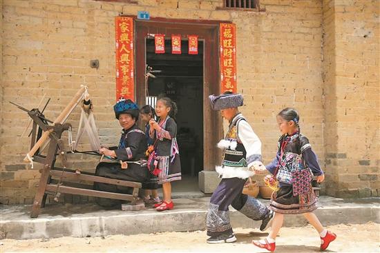 走進連山壯族瑤族自治縣福堂鎮(zhèn)太平村委會金龜村,近年打造的鄉(xiāng)村文化空間——壯瑤傳統(tǒng)風貌園一下子就驚艷了游客。在風貌園的錦繡非遺館里,游客可以欣賞到上百件明清時期的珍貴壯錦藏品;在非遺工坊和研學基地里,游客可以參與研學,沉浸式體驗壯錦的編織與文創(chuàng);在染料種植科普園里,游客還可以與自然親密接觸,增長見識……