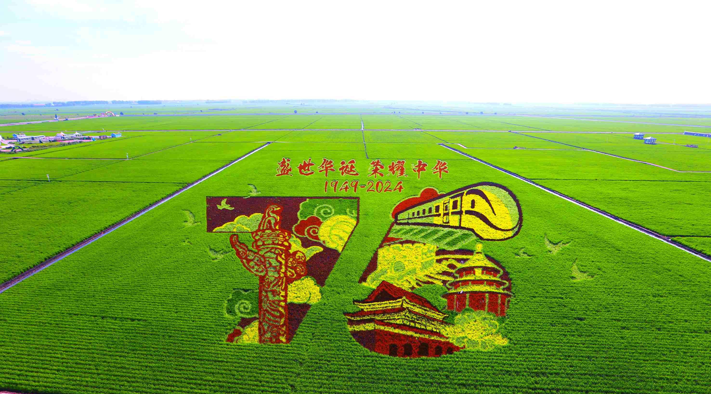 萬(wàn)畝水稻公園中的稻田畫(huà)(富錦市文體廣電和旅游局供圖)