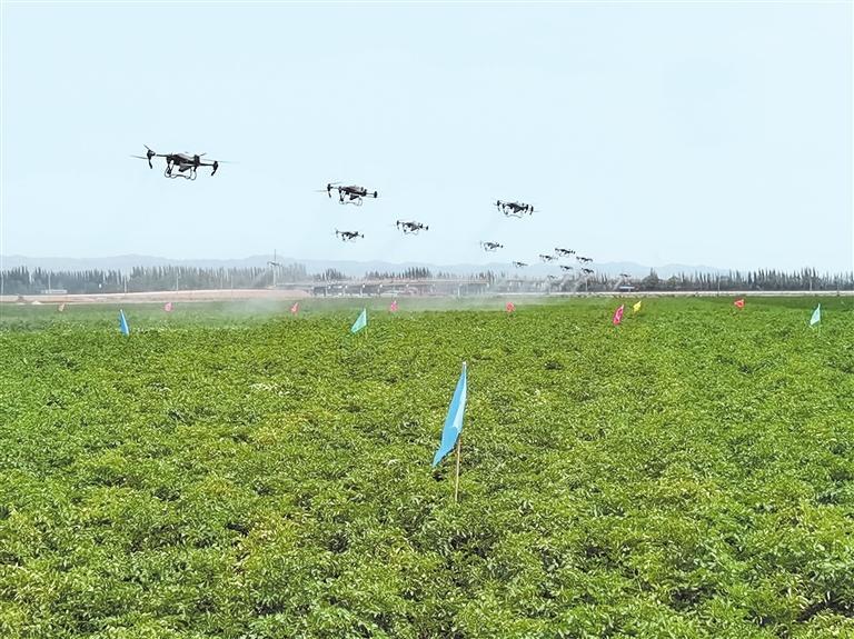 永昌縣聯(lián)聯(lián)眾力農(nóng)機農(nóng)民專業(yè)合作社正在進(jìn)行無人機飛防作業(yè) 記者 馬國順