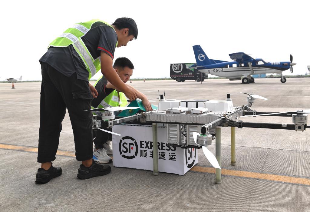 6月28日,工作人員將貴陽特色農(nóng)產(chǎn)品快遞裝進(jìn)無人機(jī) 記者 劉坤 攝