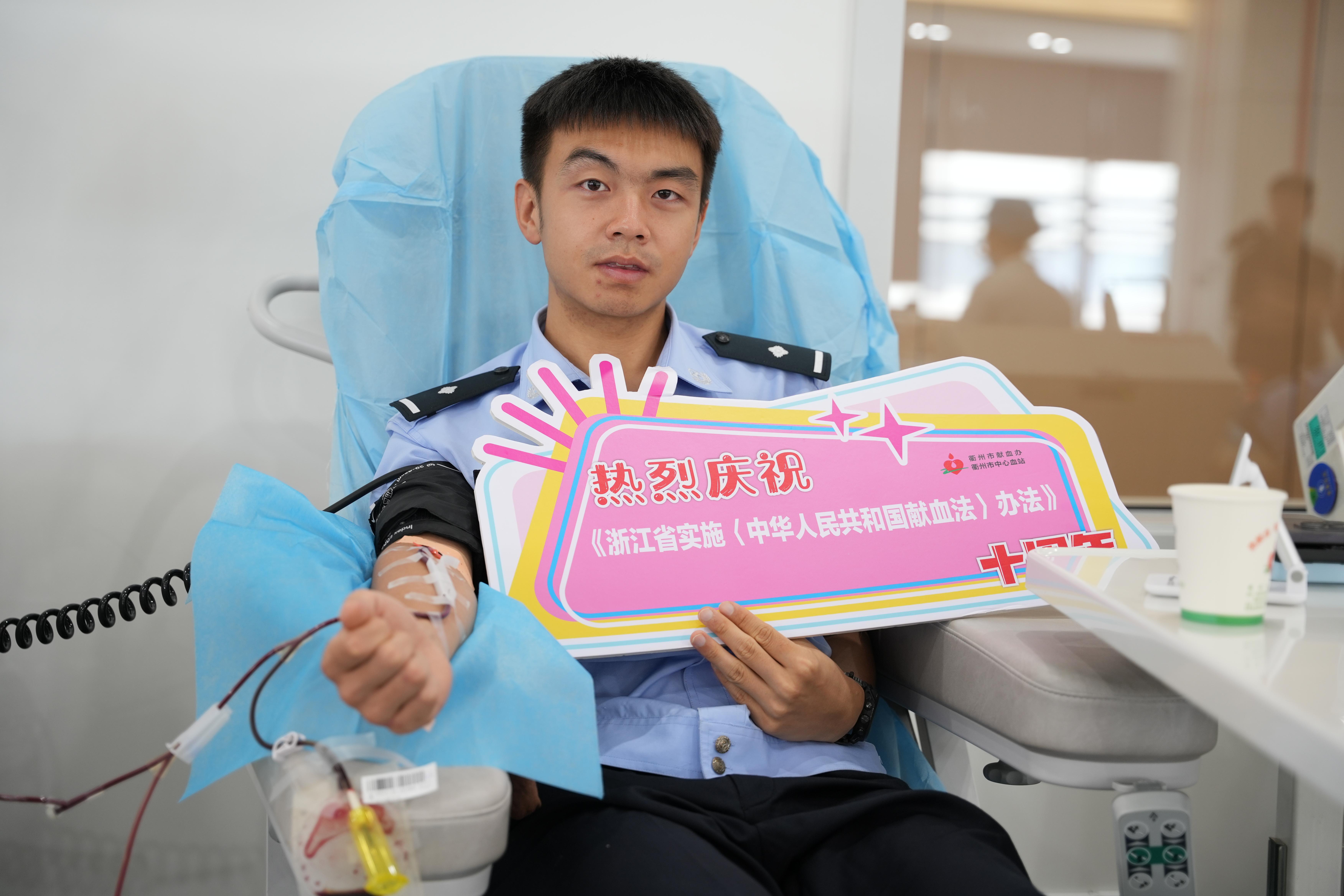 如今,徐垠飛已成為衢州市中心血站的“救火隊(duì)長(zhǎng)”,每當(dāng)血庫告急,工作人員總會(huì)第一時(shí)間想到他。無論刮風(fēng)下雨,他總能及時(shí)出現(xiàn)在血站,血站里的護(hù)士也被他的行為所感動(dòng),徐垠飛笑著說,“作為一名黨員,參加無償獻(xiàn)血我隨叫隨到”。