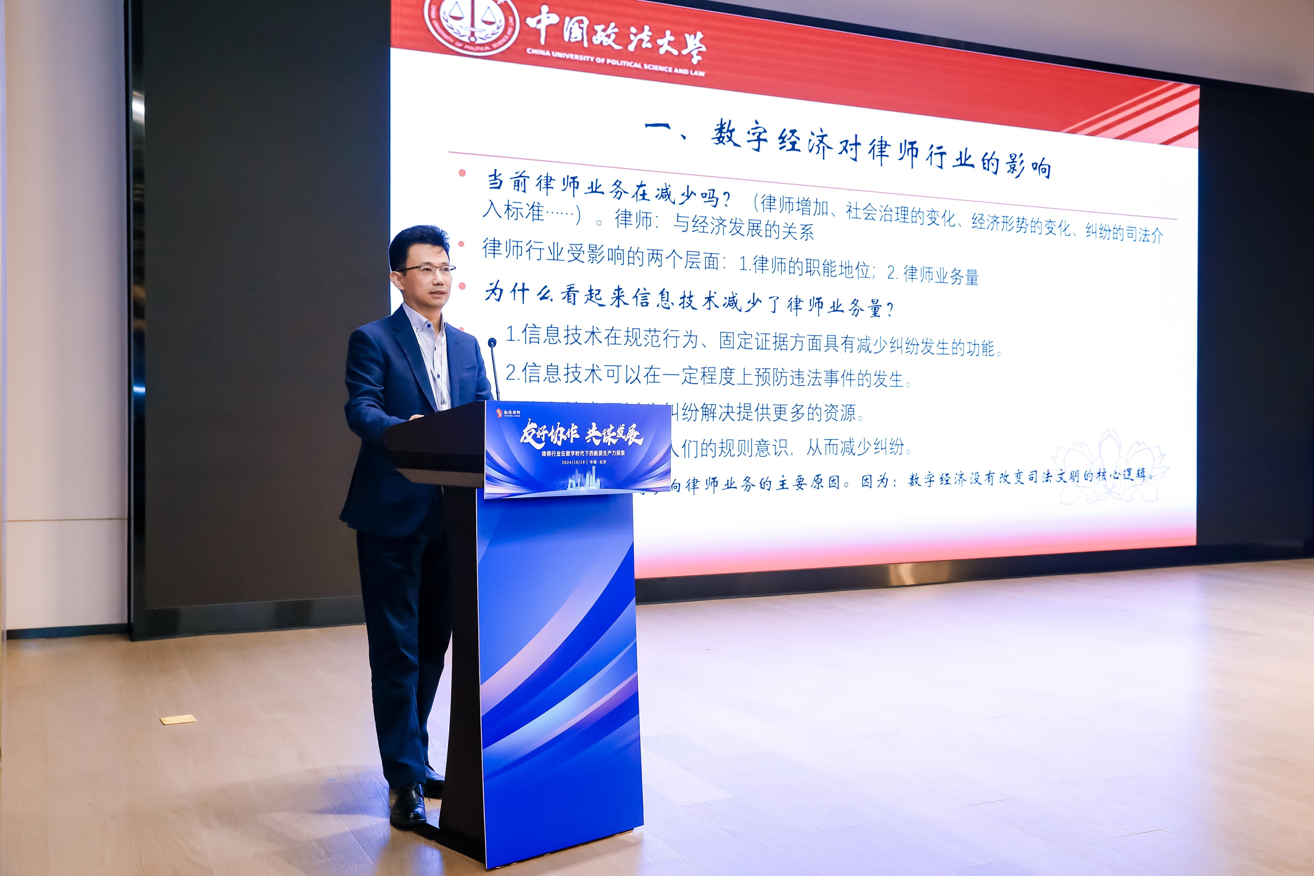 研討會(huì)上,中國政法大學(xué)博士生導(dǎo)師、教授范明志,北京市朝陽區(qū)律師協(xié)會(huì)會(huì)長劉光超分別以《數(shù)字經(jīng)濟(jì)時(shí)代律師行業(yè)面臨的挑戰(zhàn)和機(jī)遇》《構(gòu)建協(xié)會(huì)工作新格局推動(dòng)律師行業(yè)規(guī)范健康發(fā)展》為題,進(jìn)行了精彩的主旨演講。